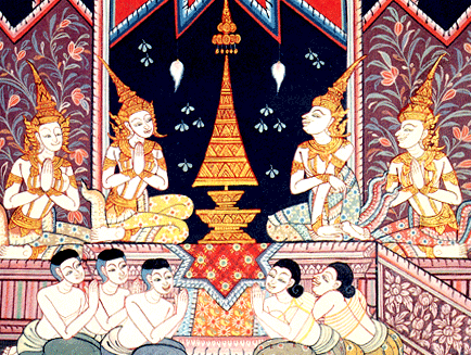 Mural Painting >> Life of Lord Buddha The Prince's marriage Prince Siddhattha married Princess Yasodhara or Bimba of the Koliya clan and lived happily in the three castles built for the three seasons.