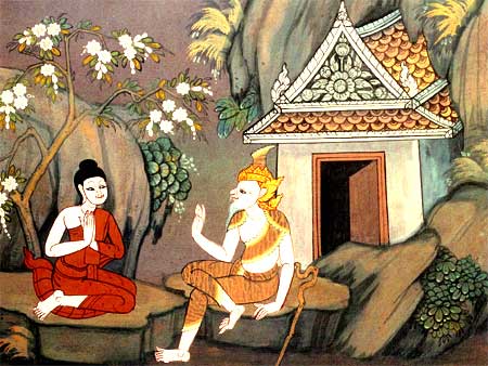 Mural Painting >> Life of Lord Buddha The Quest for Enlightenment The Prince first approached some ascetics for learning and training in search of freedom from suffering.