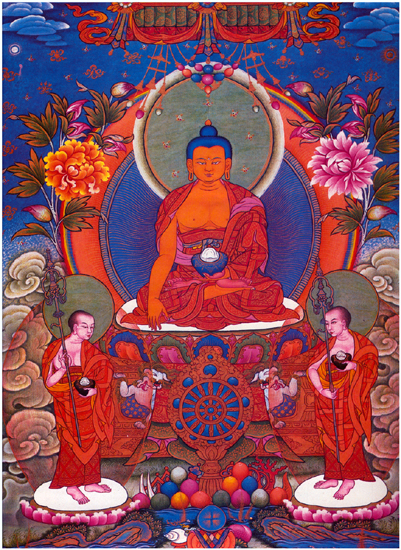 Buddhist Images >> Tibetan Buddhist Images >> Thangkas Shakyamuni Buddha 03 A Thangka is a complicated, composite three-dimensional object consisting of: a picture panel which is painted or embroidered, a textile mounting; and one or more of the following: a silk cover, leather corners, wooden dowels at the top and bottom and metal or wooden decorative knobs on the bottom dowel. What is the purpose of a Thangka, what use was it originally intended for? Thangkas are intended to serve as a record of, and guide for contemplative experience. In this way, Thangkas are intended to convey iconographic information in a pictorial manner. A text of the same meditation would supply similar details in written descriptive form.
